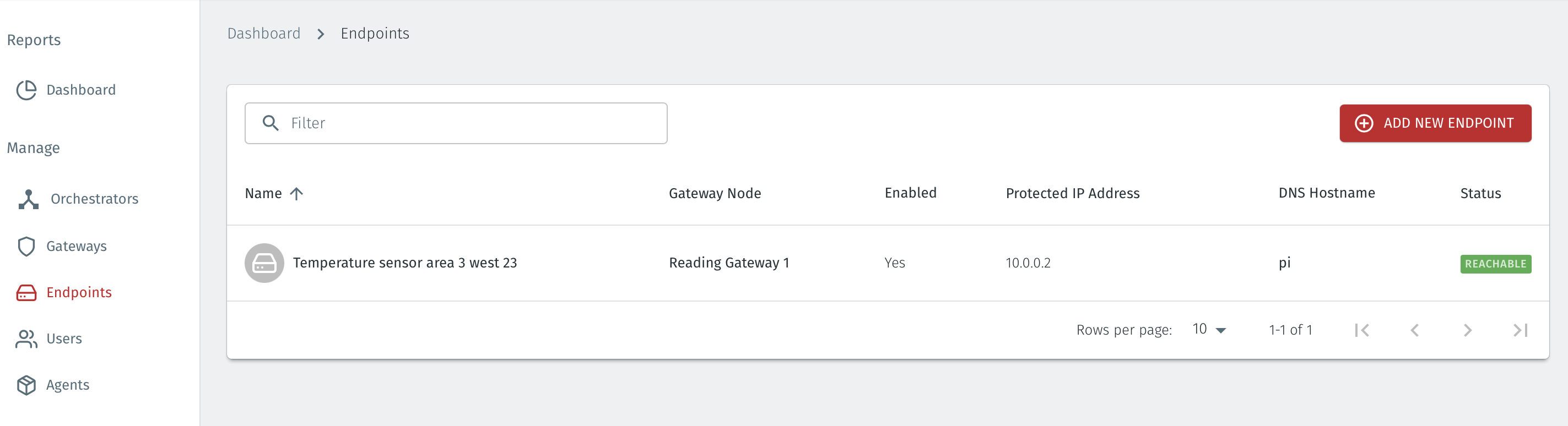 You can check the new IP address assigned to your endpoint by clicking on the Endpoints in the menu bar on the left and your endpoints will be be displayed in the window on the right. The IP address which has been assigned to the endpoint by its gateway is shown in the Protected IP Address column.
