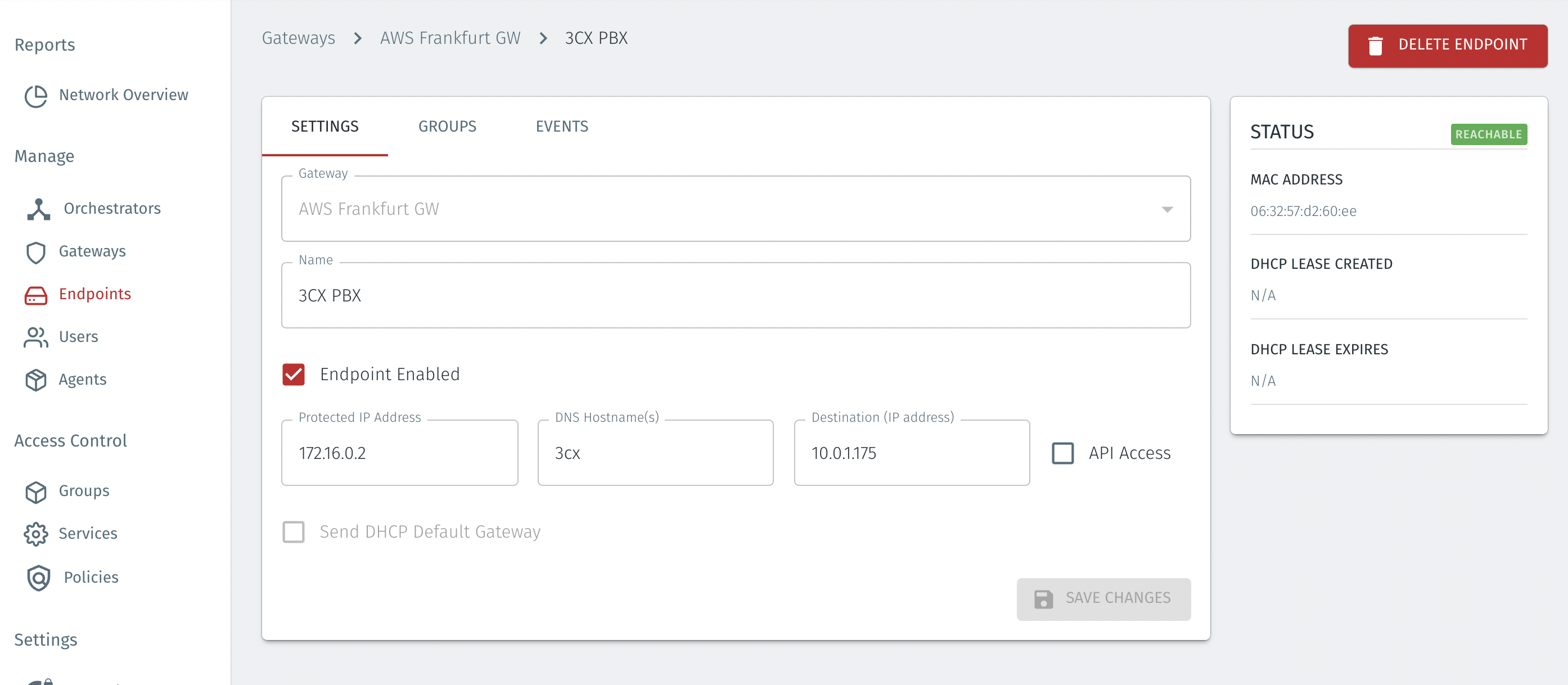 Check "Endpoint Enabled" to Enable it when done (Note, the endpoint must be enabled to modify the IP address)